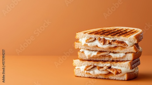 Delicious Grilled Sandwich Stack on Vibrant Orange Background Display