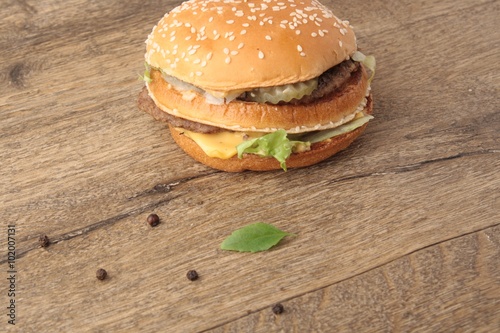Delicious hamburgers on wood