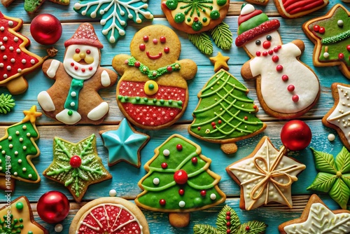 Delicious Homemade Christmas Cookies on Vibrant Background - Top View