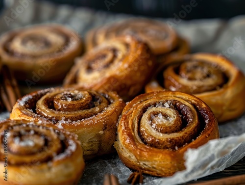 Delicious homemade cinnamon rolls on a rustic wooden surface