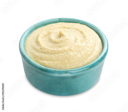 Delicious hummus in bowl isolated on white