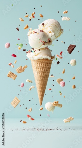 Delicious ice cream cone with toppings studio background food photography freshness aesthetic