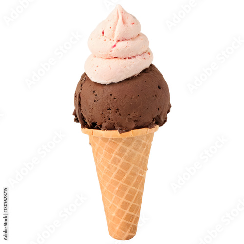 Delicious ice cream scoop on a crispy waffle cone, isolated on a transparent background.