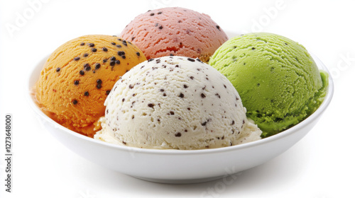 Delicious ice cream scoops in bowl, featuring vibrant colors and flavors