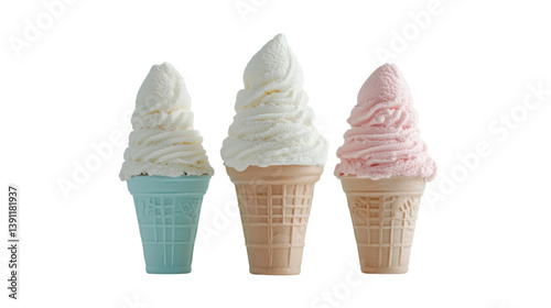 Delicious ice cream treats studio setting cutout background bright colors close-up summer vibes
