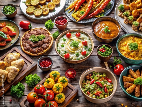 Delicious International Buffet Catering Food Platters, Left Copy Space