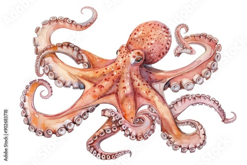 Delicious Japanese Octopus Sashimi with Fresh Seafood in Watercolor Style
