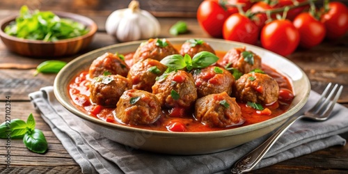 Delicious juicy meatballs in flavorful tomato sauce, meatballs, juicy, flavorful, tomato sauce, homemade, savory