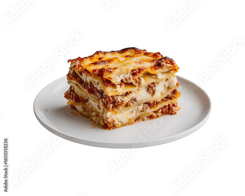 Delicious lasagne served on a classic white plate