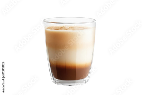 Delicious latte served in a clear glass with beautiful layers of coffee and milk perfect for any coffee lover's delight