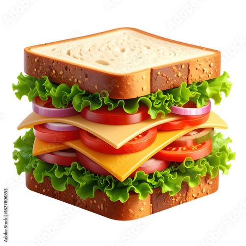 Delicious layered sandwich with fresh vegetables cheese and bread, ideal for lunch or snack, healthy food, open faced sandwich presentation