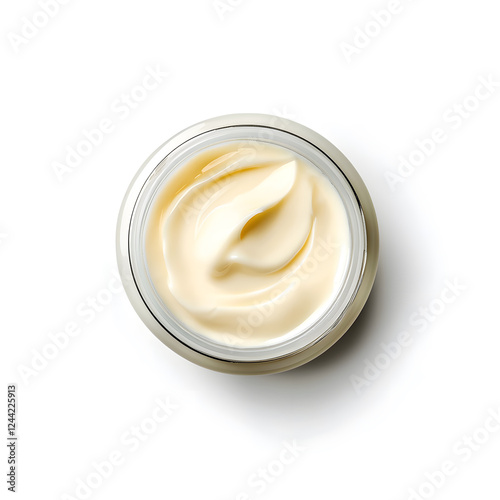 Delicious mayonnaise sauce with in ceramic dip bowl and for ingredients cooking on the table on table, top view