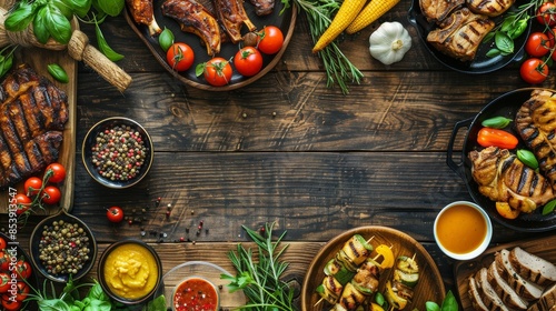 delicious meat, fresh vegetables, spicy herbs and spices on the background of a wooden table, homemade healthy food, cooking hobby, food delivery concept, cooking school, copy space, place for text