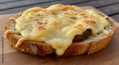 Delicious Melted Cheese on Bread Slice Close-up Presentation