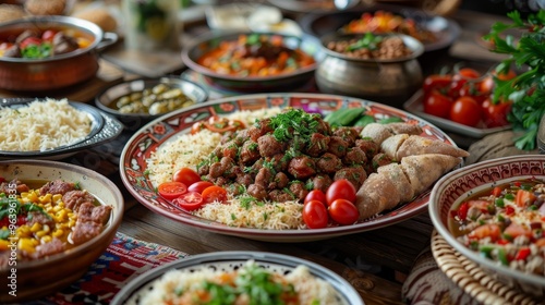 Delicious Middle Eastern Food Platter with Meatballs Rice and Vegetables