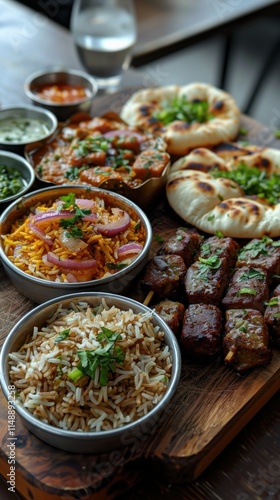 Delicious Pakistani Cuisine Platter Biryani Karahi Naan Kebabs