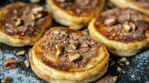 Delicious pancake recipe with pecans cozy kitchen food photography rustic setting close-up comfort cooking