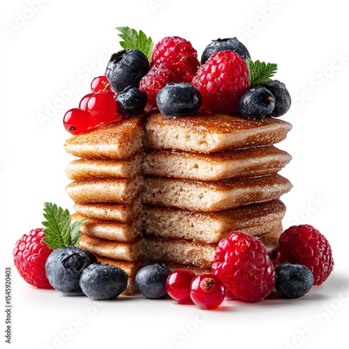 Delicious pancakes with fresh berries stack breakfast food photography recipe idea sweet dessert brunch treat