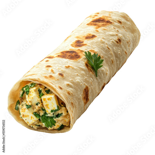 Delicious Paneer Wrap with Fresh Herbs in a Soft Tortilla, Perfect for a Quick Meal or Snack on transparent background