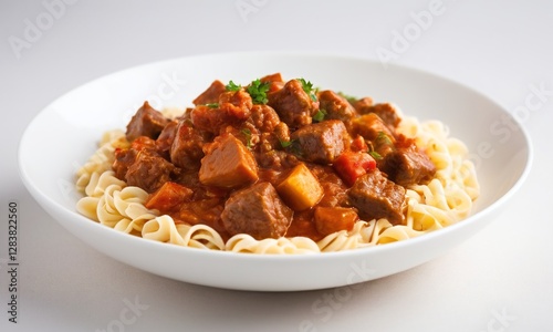 Delicious pasta with rich meat sauce and fresh vegetable chunks
