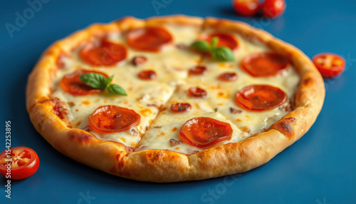 Delicious Pepperoni Pizza Cheese, Tomatoes, and Basil