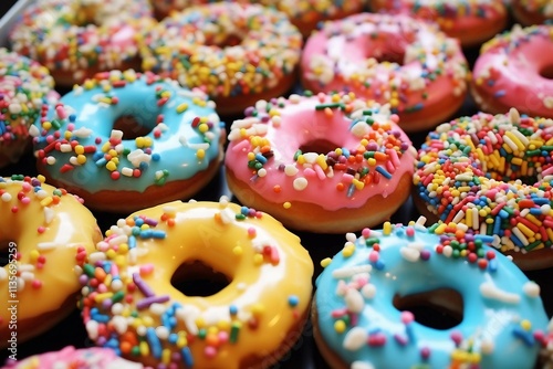 Delicious Picture of Colorful Glazed Doughnuts with Sprinkles and Nuts
