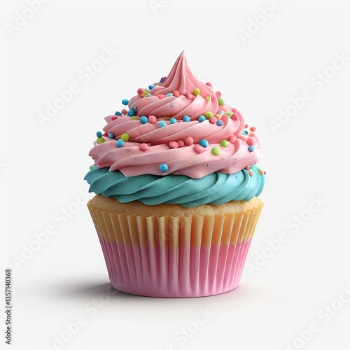Delicious Pink and Teal Cupcake with Sprinkles