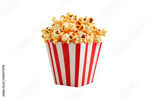 Delicious popcorn snack in red and white box isolated on transparent background.
