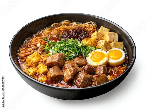 Delicious Ramen Bowl with Beef Tofu and Egg Ready to Eat