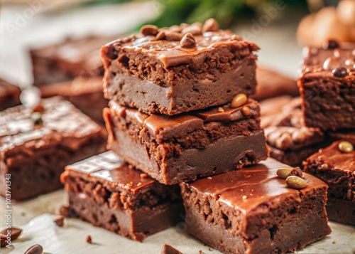Delicious Realistic Brownies Isolated on a Clean Background for Dessert Menus
