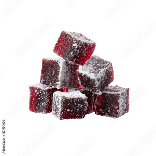 Delicious Red Turkish Delight Cubes with Powdered Sugar
