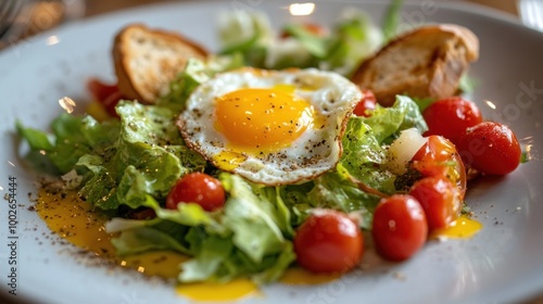 Delicious Salad with Fried Egg and Cherry Tomatoes