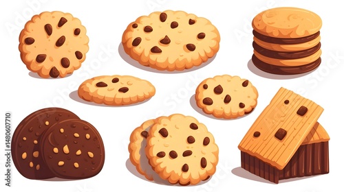 Delicious Set of Oatmeal Pastry with Chocolate for Bakery and Confectionery Advertising