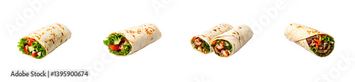 Delicious shawarma assortment with filling, tortilla wraps, cut out transparent