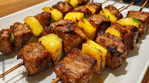 Delicious Shawarma Pork and Pineapple Skewers on Display for Culinary Inspiration.