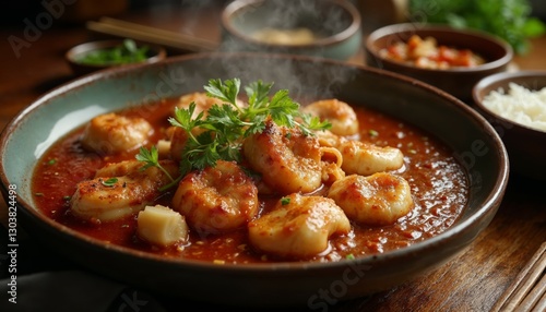 Delicious Shrimp Curry Bowl with Rice and Fresh Herbs Displayed Nicely