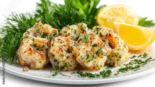Delicious Shrimp Dish with Fresh Herbs and Lemon Slices