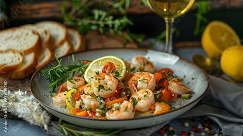 Delicious Shrimp Dish with Roasted Vegetables and Lemon