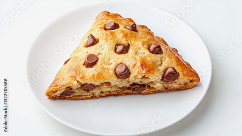 Delicious slice of homemade chocolate chip cake served on a rustic plate with a charming aesthetic appeal