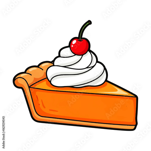 Delicious Slice of Pumpkin Pie with Whipped Cream and Cherry.