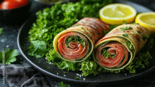 Delicious Smoked Salmon Crepe Rolls with Lemon Garnish
