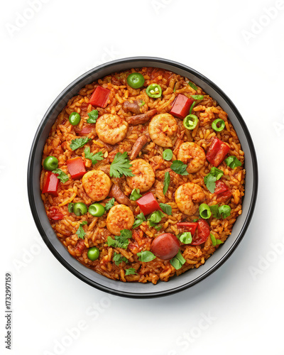 Delicious Spanish Paella Rice Dish with Shrimp and Peas.
