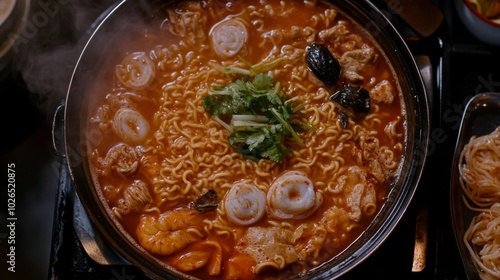 Delicious Spicy Noodle Soup with Fresh Ingredients