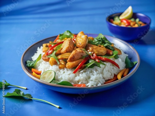 Delicious Spicy Thai Chicken Salad with Rice - Low Light Photography