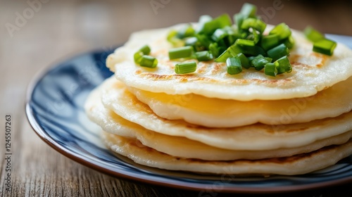 Delicious Stack of Fluffy Pancakes Topped with Fresh Green Onions