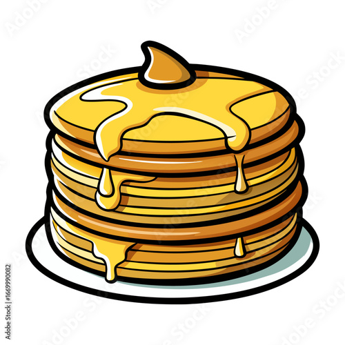 Delicious stack of pancakes with honey dripping vector illustration, perfect for breakfast food designs, restaurant menus, and culinary branding projects