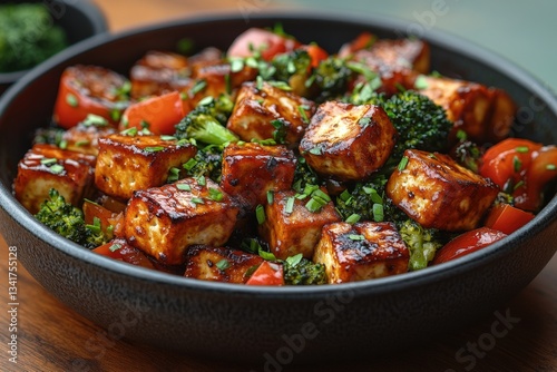 Delicious Stir-Fry Featuring Tofu, Broccoli, and Bell Peppers Brings Vibrant Flavors and Healthy Ingredients to Your Dining Table