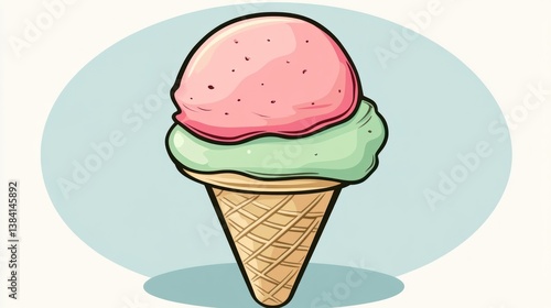 Delicious Strawberry and Mint Ice Cream Scoops in a Waffle Cone Sweet Treats for Summer Days