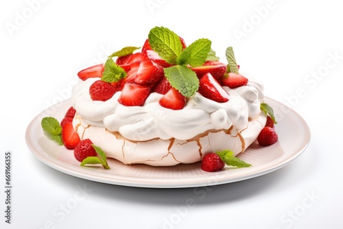 Delicious Strawberry Cake with Whipped Cream on a Plate Created With Generative AI Technology