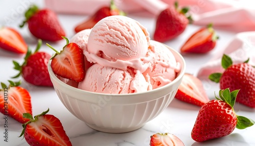 Delicious Strawberry Ice Cream in a Bowl with Fresh Strawberries with Summer Treat.